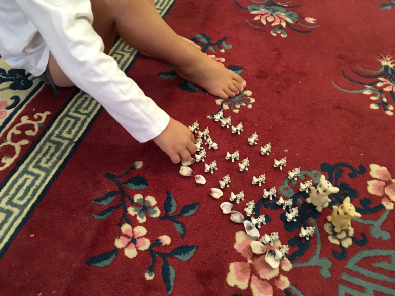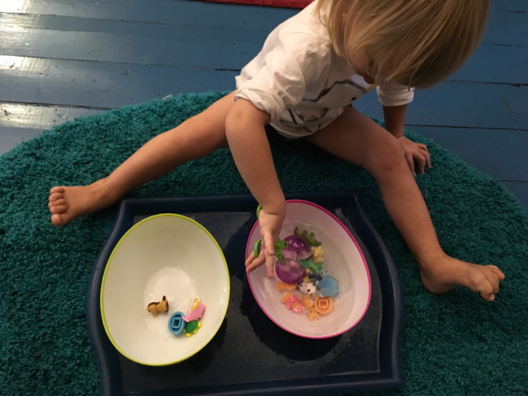 Привезла из Лондона вот такой уникальный наборчик. Закладывали фигурки в крупы и песок, искали одинаковые и просто похожие, сравнивали, выясняли отличия и сходство. Параллельно считали и разыгрывали сценки.