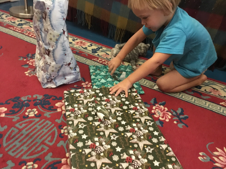 Трехлетие отметили более чем скромно. С утреца распаковали подарочки, днем посидели в суши-баре, попили кофе в Шоколаднице, а вечером задули свечки на тортике. Наспех сделанные фотки в термобелье перед вечерней прогулкой. В тот же день придали новую неровную форму нашим локонам и сменили детскую кроватку на «настоящую».
