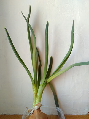 Как полагается всем «подоконниковым огородникам», мы вырастили лук в баночке с водой.