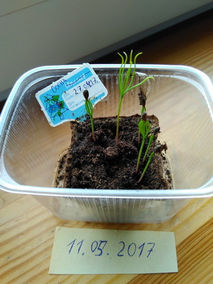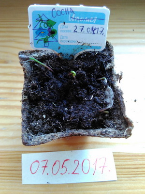В конце апреля на место съеденных ростков нами были посажены семена сосны.