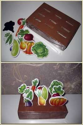 Конечно ухаживать за таким огородом не нужно, да и овощи не росли. Зато мы повторяли, что растёт в земле, а что на дереве, кусте. Эта была подготовительная работа.