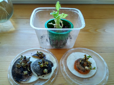 Кошка погрызла и эти ростки, но ничего, они пока держатся, растут и ждут пересадки.