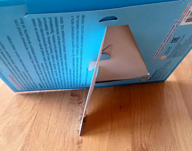 Сама упаковка также служит рамкой для готовой картинки. Ее можно или повесить на стену, используя одно из вырубленных на задней стороне рамки отверстия, или поставить на стол, отогнув подставку.