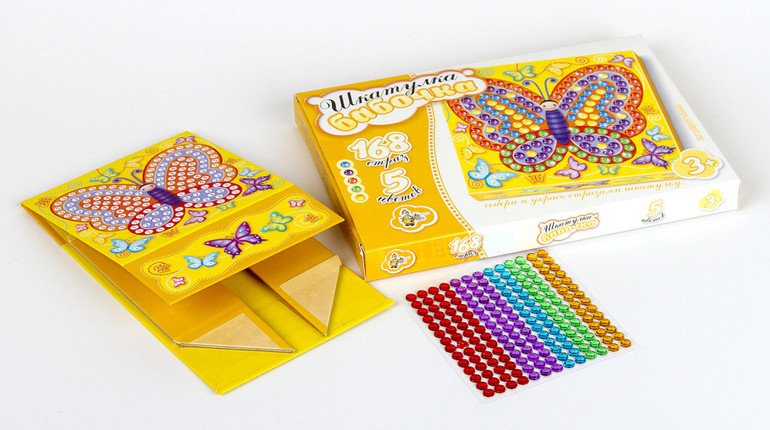 Еще один хороший и недорогой набор для творчества. Отлично отрабатывает мелкую моторику и умение пользоваться ножницами. Пятилетняя дочка сама вырезала все детали. На обратной стороне каждой детали напечатан номер, согласно которому они вклеиваются в контуры с соответствующими номерами.