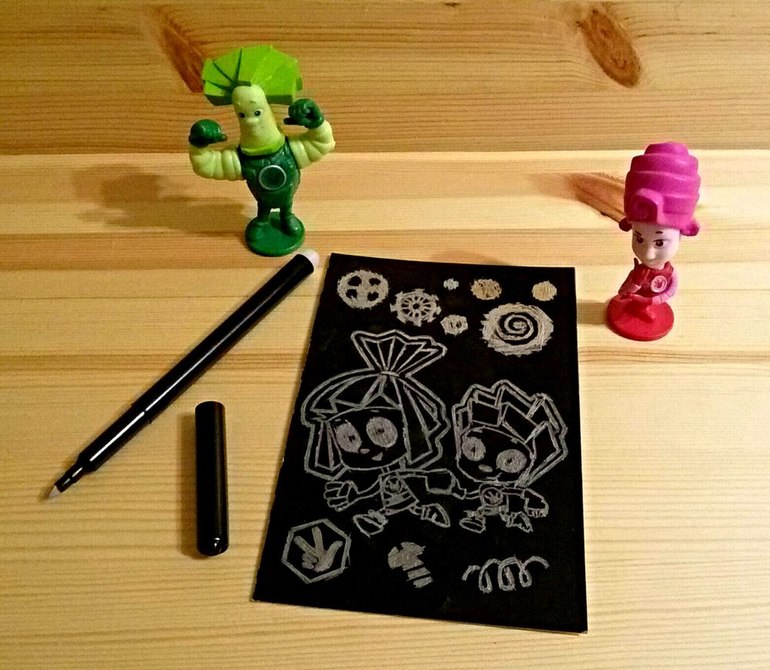 Полученным результатом дочка осталась довольна. Видно доросла для более монотонных занятий. А набор действительно оказался очень качественным. Специальным штихелем все очень легко процарапывается и получается забавная картинка. Надо будет обязательно повторить!