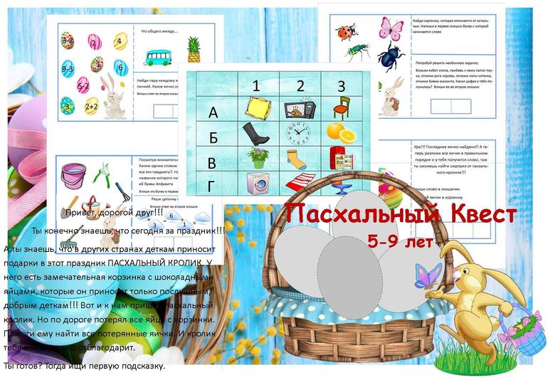 В помощь Вам Готовый пасхальный КВЕСТ для деток от 4-х до 9 лет.