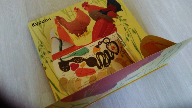 Моей дочке так было интересно откуда у курицы берется яйца. Почему выпадают перья. Очень любопытно было узнать зачем курица глотает камешки.
