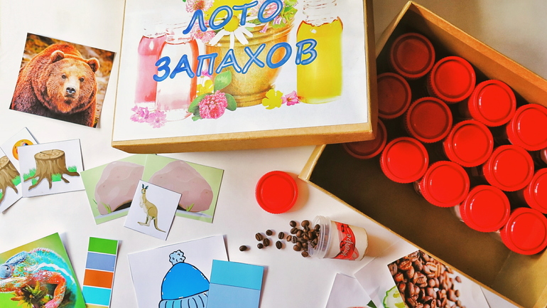 На фото наша самодельная игра «Лото запахов». Детки её очень любят и часто стягивают ее с полки, чтобы поиграть: понюхать баночки с эфирными маслами и угадать, чем же пахнет. Конечно, позже мы всё покажем поближе. Ни один пункт нашего Игроплана не останется без разъяснения и подробной демонстрации
