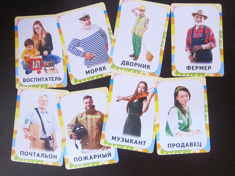 Для начала мы с сыном рассмотрели карточки и он назвал те профессии, что знал. Удивил приятно, назвав порядка 18-20 профессий. Играем с карточками пока так (наши правила, не производителя):