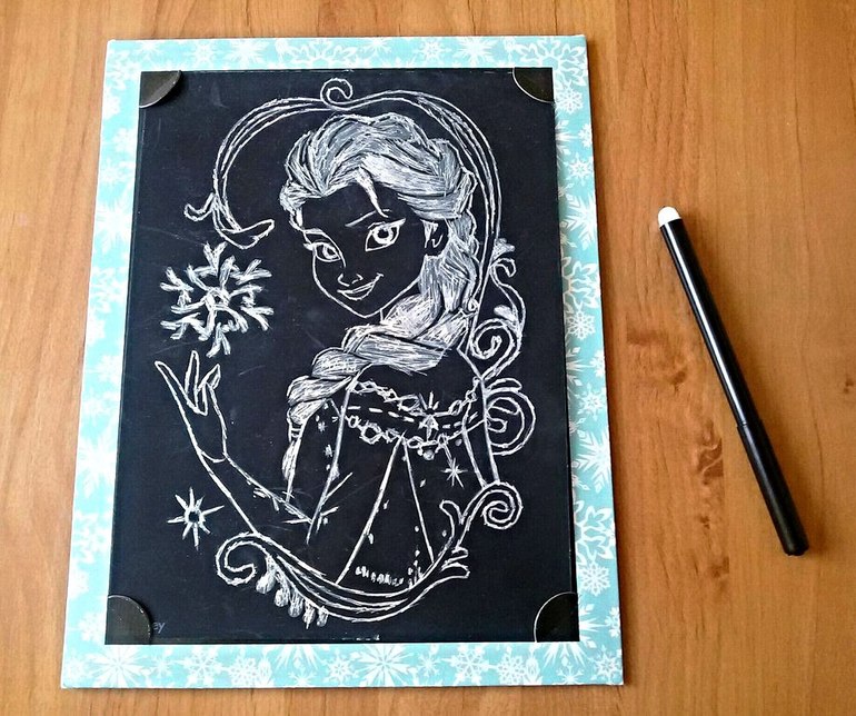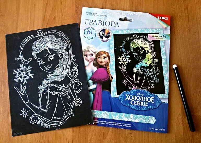 Дочка теперь в магазине мимо гравюр не проходит, обязательно что-то домой прихватит и сидит, соскребает увлеченно. Сейчас это один из любимых видов творчества. А мне нравится, что все очень просто и не требует никакой дополнительной подготовки. Достаточно распаковать гравюру, штихель и можно приступать. Сиди, процарапывай рисунок по контуру и наблюдай, как из-под слоя краски появляется основа.