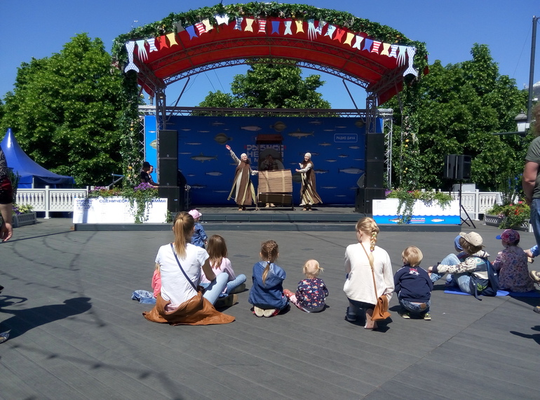 Куда пойти с ребенком? (Все о досуге с ребенком и семьей)Как-то не судьба Пете снова отправиться в такую погоду в детский сад. Решили мы с детьми поехать сегодня на еще один фестиваль: "рыбная неделя" от "Московских сезонов". Мы такие фестивали очень любим и часто посещаем вот уже второй год. Конечно, у Московских сезонов есть основные фестивали, типа рождественнского, а-капелла,и "времена и эпохи", а вот рыбная неделя - все-таки второстепенный, как ни крути. Но в будни посетить разок - милое дело). Опять же, все карусели, спектакли, мастер-классы и другие активности бесплатны и их довольно много.