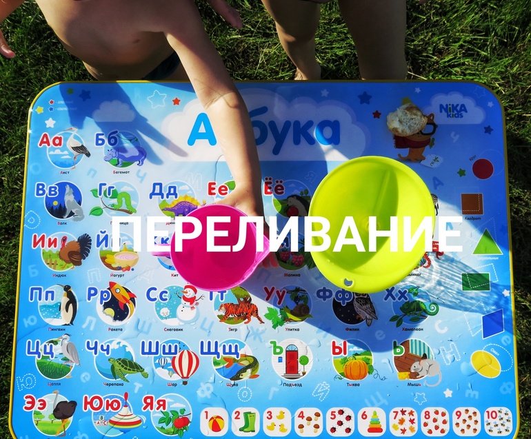 Продолжаем тему развития мелкой моторики. Следующий пункт у нас - переливание воды. Где можно играть: - в домашней песочнице - на полу, накрытой пленкой - на столе - в ванной - на улице Что понадобится, кроме воды: - чашечки - стаканчики - миски - ведерки - бутылки - емкость с носиком - ложки всех размеров - воронки - лейка - губки - спринцовки - шприцы без игл - сачки - сито - капсулы от яиц сюрпризов или теннисные шарики - мелкие бусины - жидкое мыло или безопасное средство для мытья посуды - пищевой краситель или гуашь - водяная мельница - трубки Как можно играть: - переливать из полной емкости в пустую - переливать из емкости с носиком - перечерпывать ложками - наливать через воронку - лить из лейки - переливать из полной емкости в пустую с помощью губки - переливать из полной емкости в пустую с помощью спринцовки - переливать из полной емкости в пустую с помощью шприца - вылавливать бусинки ложкой - вылавливать капсулы от яиц сюрпризов или теннисные шарики ложкой - вылавливать губки большой ложкой - переливать воду с пеной - переливать окрашеную воду - лить воду на водяную мельницу - лить воду через трубки, прикрепленные к стене (трубопровод) - уборка разлитой воды