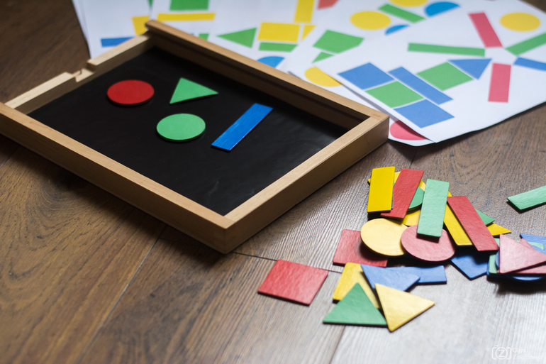 🤘 Фигурки, которых 32 (круг, треугольник, квадрат и прямоугольная палочка: все в двух экземплярах и в четырех цветах). Путем анализа фотографий и опытным путем я определила приблизительно размер деталей. Все "угловатые" решила вырезать из картона 1,5мм, круги фанерные заказала на Алиекспресс. Кто дружит с лобзиком, тому с картоном дело иметь не стоит, конечно. Я же расчертила, вырезала, зашлифовала наждачкой, потом окрасила акриловой краской, сверху - акриловым лаком. С обратной стороны приклеила магнитный винил.