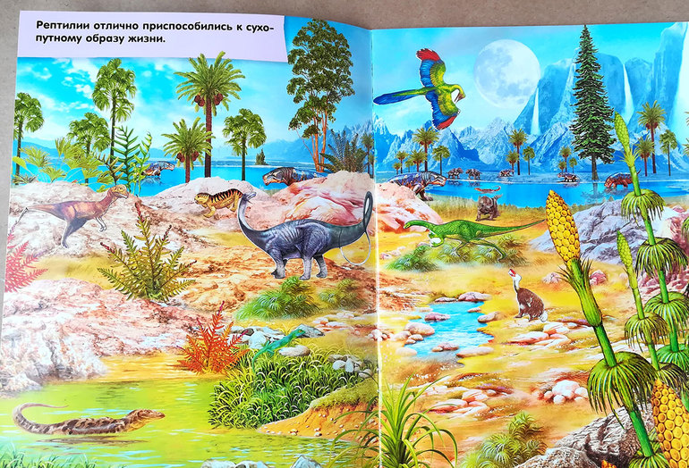 Красивые наклейки, качественные, действительно можно клеить много раз. Но на этом все. Здесь вас ждет просто много динозавров. Ни названий динозавров, ни каких-то полноценных фактов здесь нет. Просто знай, клей, каких-то динозавров.