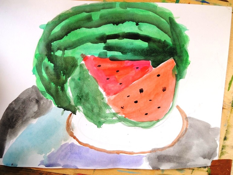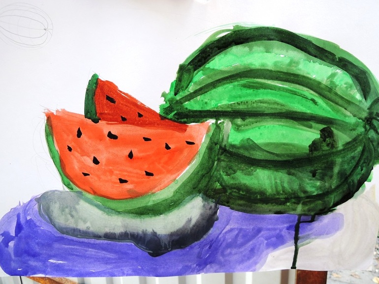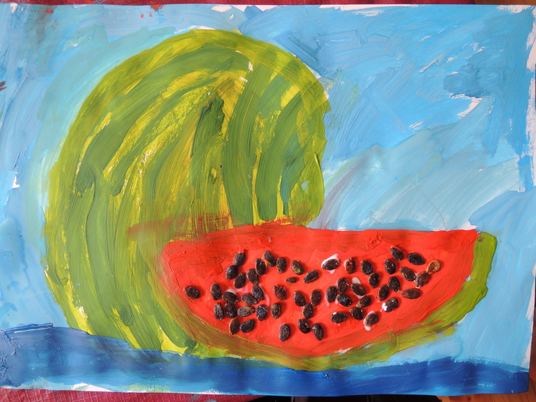 Художка ( красим, рисуем , придумываем новые способы рисовать)Рисуем АРБУЗ.