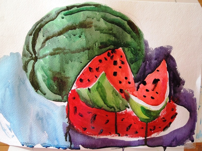 В конце июля традиционно появляются первые сахарные арбузы. Попробуйте ,прежде чем съесть его, нарисовать АРБУЗ!