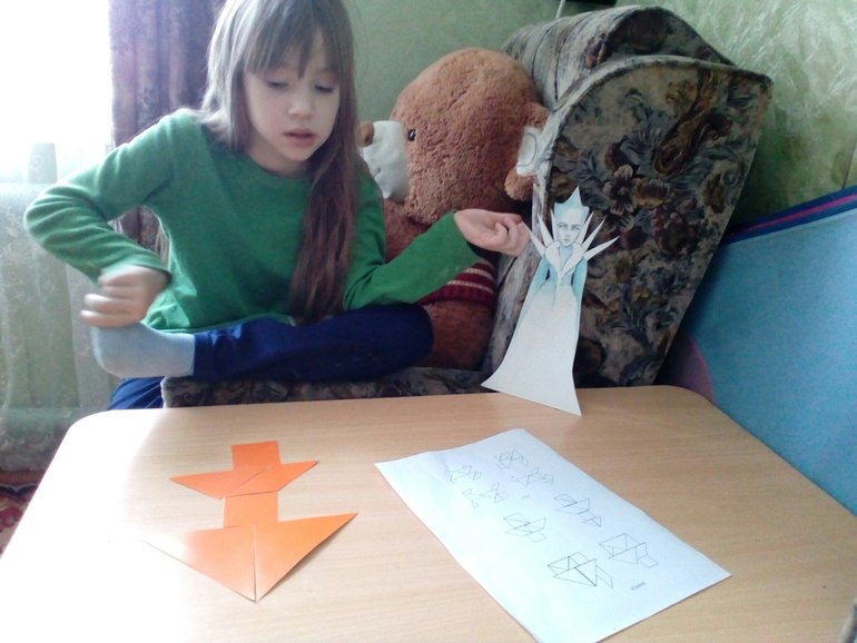 Вчера побывали в гостях у Снежной королевы. Королеву нарисовала мне сестра. Подарили ей ледяные бусы, побегали -поиграли, потом стали выполнять задания. Танграм Лиде было довольно интересно собирать, но сложновато. Она не очень внимательная, поэтому не все получилось. Но собрали домик, собачку, цифру 1. Потом, чтобы Лида не заскучала, мы еще поиграли в подвижную игру. Делали опыты, но нам с Максом опыты делать не очень хорошо получается, с ним вообще невозможно что-то делать. Опыты получились смазанными. Потом сделали мороженое (первый раз делали, получилось нормально, но не сказать чтобы очень вкусно), и заодно я решила опробовать новую форму для леденцов. Леденцы понравились, но ни одного целого сделать не удалось,в се сломались( Будем еще пробовать. Потом искали осколки волшебного зеркала, собрали карту, Лида сразу поняла,ч то надо искать в комоде (а я волновалась, мне казалось, что мою карту не так легко будет понять). Нашли очередной кусочек календаря. Ждем дальнейших приключений!