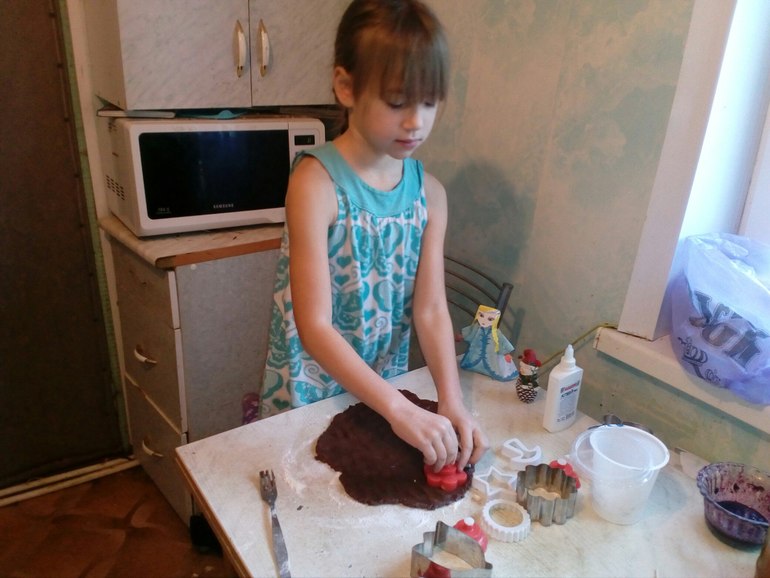 с утра Лида, как всегда, нашла под подушкой письмо от своего друга Снёжика, в котором он ей сообщил, что наш давний враг Злюка Закорюка украла восточный календарь. Мы разгадали ребус, нашли письмо. Лида сразу сказала, что надо погреть записку утюгом (делали уже такое). В холодильнике нашли подарок для Снегурочки, стали делать саму Снегурочку - у меня как раз в запасе была вырезалка от Барни. Сделали Снегурку, потом еще раскрасили ее, а то какая-то бледная была( Начали печь печенье. Давно уже не пекли, поэтому Лида взялась с энтузиазмом. Получилось вкусно и красиво! Потом разгадали шифр, нашли в сапоге часть календаря и перо (Лида спрашивала, для чего оно, а я и сама не поняла, если честно. Сказала пригодится) После этого сказала, что Снегурка нам подскажет, где искать остальные части, если мы ее повеселим. И мы поиграли в Собачьи хвосты и еще в Снег, лед, кутерьма. Игры Лиде очень понравились, обязательно включу их в наш новогодний праздник, который я хочу сделать Лиде и ее друзьям. Ну и потом мы получили волшебный билет, Лида проявила надпись (кстати, она даже не впечатлилась тому, как надпись появилась). Я сказала,ч то завтра отправимся в деревню Снеговиков, а она требовала это сделать сегодня( Жалко, не удалось взять в библиотеке книгу про Дедморозовку, ну ничего.