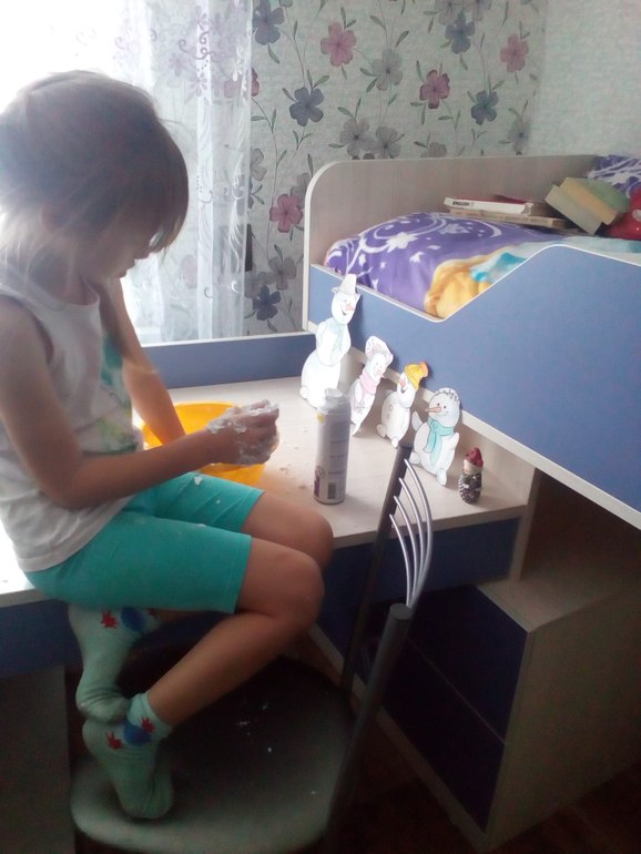 У нас что-то последние дни не задались, и сегодня настроение не самое лучшее, но мы все же поиграли. Сначала познакомились со снеговичками (моя сестра нарисовала), выполнили задания. Лида очень долго и обстоятельно рассказывала про преимущества и недостатки зимы, решила примеры, потом поиграли со снегом. Оказалось, что опыт со снегом они уже делали в садике! Сделали 2 снежные массы, Лида с ними повозилась. Из пены для бритья и соды мы в том году делали снеговика, так он почти целый год простоял! И то его потом сломали. Вот какая стойкая масса получается( Последнюю массу мы тоже делали, только вместо лимонки уксус лили и делали вулкан. Потом я предложила Лиде выполнить пару заданий, она прошла лабиринт, нашла под подушкой список слов. В нужных местах нашли части подсказки, Лида сразу догадалась,что это микроволновка. Год назад она не была такой догадливой! Даже самые легкие загадки ее могли привести в ступор. Ну и там нашли кусочек календаря и зернышки. На волшебном билете прочли надпись про Бабу Ягу, это Лиде понравилось! Ей нравится пострашнее... Но она расстроилась, что это будет только завтра.... Поиграть в подвижные игры не успели, но сегодня к нам должны прийти гости, вот с ними и поиграет!