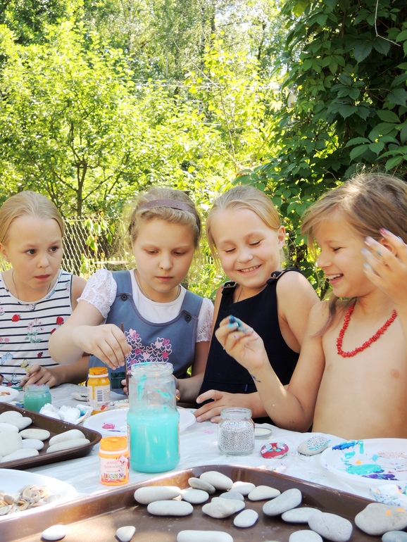 Морские камушки, ракушки , краски и много свежего воздуха!
