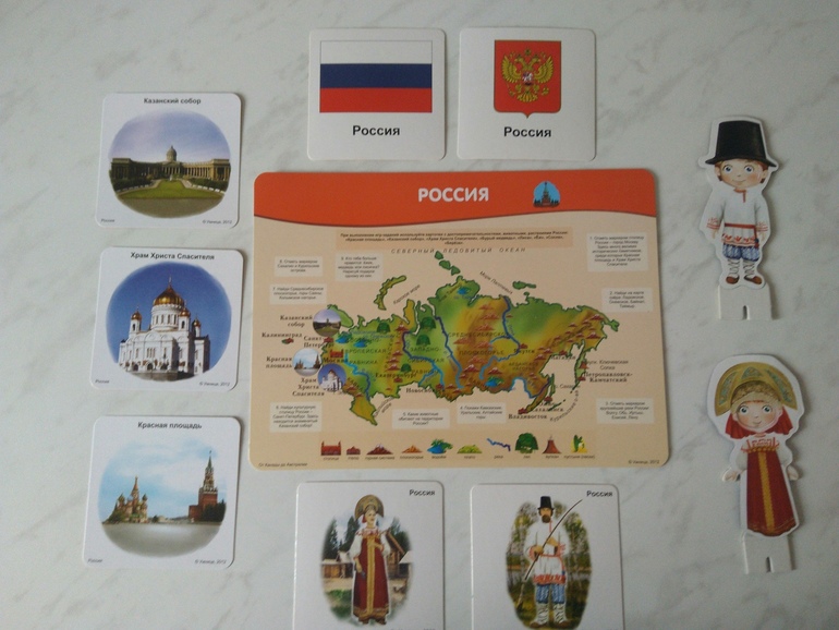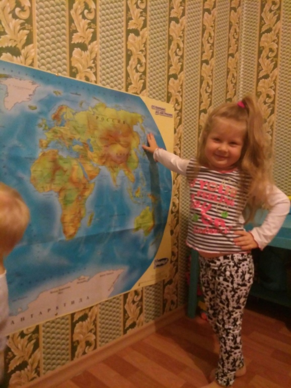 В этот раз отошли от формата тематического занятия. Просто периодически рассматриваем (обращаем внимание на то, какие моря-океаны омывают берега России, какие страны у нас по соседству, находим крупные реки и озера). На карте России мы знакомимся с крупными городами, определяем где расположены горы, а где леса..