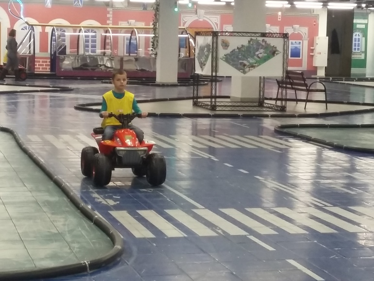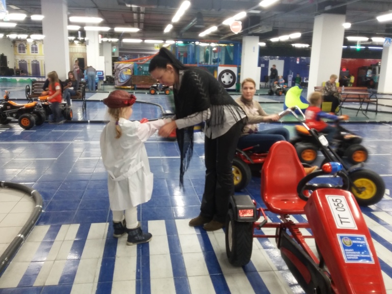 Провели в ТачкиГраде весь день, выходя один раз на часок поесть в ресторанном дворике наверху ТРК. Дети трижды арендовали транспорт (т.е. провели на колесах 3 часа!), дважды сразились в лазертаг, обошли не по одному разу станции, несколько раз поиграли в игры. Научились замечать дорожные знаки, светофоры, пропускать пешеходов, ориентироваться в дорожной обстановке, понимать сигналы регулировщиков.