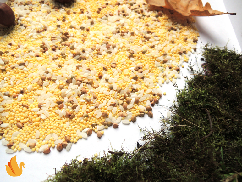 3. Сенсорные коробочки. Каждый год осенью мы делаем такие коробочки вместе с детьми. В одной такой коробочке я помещаю от самых мелких материалов, таких как пшено, рис, до крупных шишек. Использую так же мох, ягоды, гортензию.