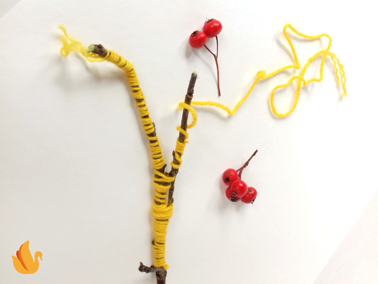 Украшаем деревья. Осенью деревья опадают, им становится холодно так же как и людям. Давайте вместе с детьми согреем наши сказочные деревья и украсим их?! Из красивых веточек, которые опадают в лесу или в парке у нас получились "деревья" . С помощью ниток мулине или ниток для вязания украшаем и согреваем веточки.