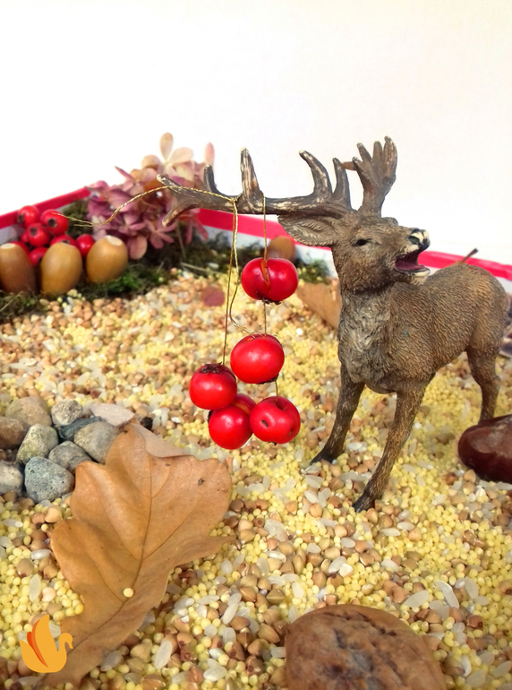 5. Бусы из ягод. Для бус из ягод лучше всего подходит рябина. Но можно попробовать и другие ягоды использовать ( калина, шиповник). С помощью тупой иглы нанизываем бусины на нитку. Что теперь с ними делать? Можно украсить такой гирляндой наше дерево или угостить лесных жителей!