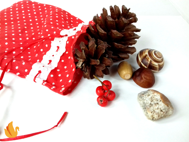2. Мешочки. Для этой игры нам понадобится два мешочка. Одинаково их наполняем различными природными материалами. Предлагаем ребенку нащупать какой-то предмет и угадать что это. Другой рукой предлагаем нащупать во втором мешочке тот же предмет.