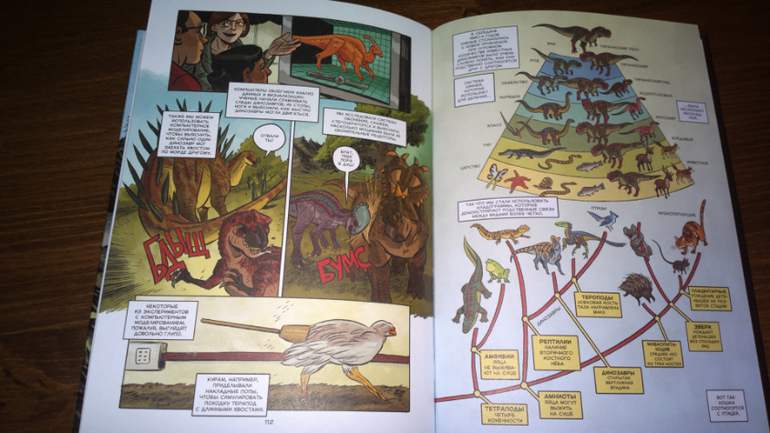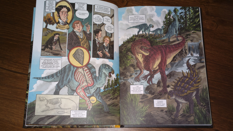 "Динозавры. Научный комикс" - не совсем обычная книга, наверное, это понятно даже из названия. Комикс рассказывает не только о динозаврах, но и о том, как работают палеонтологи и как поменялась наука за последние 300 лет.