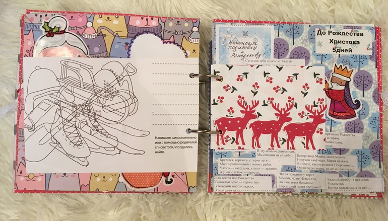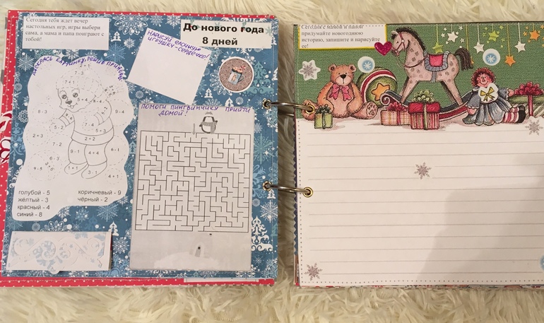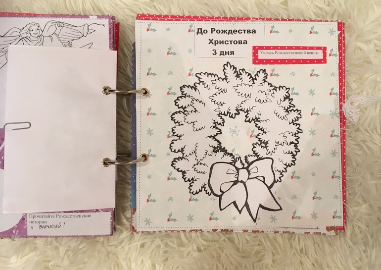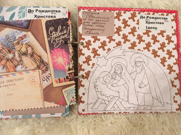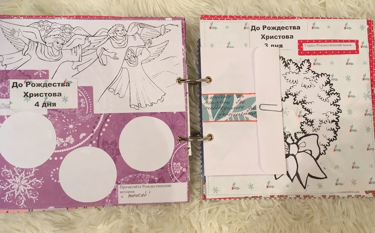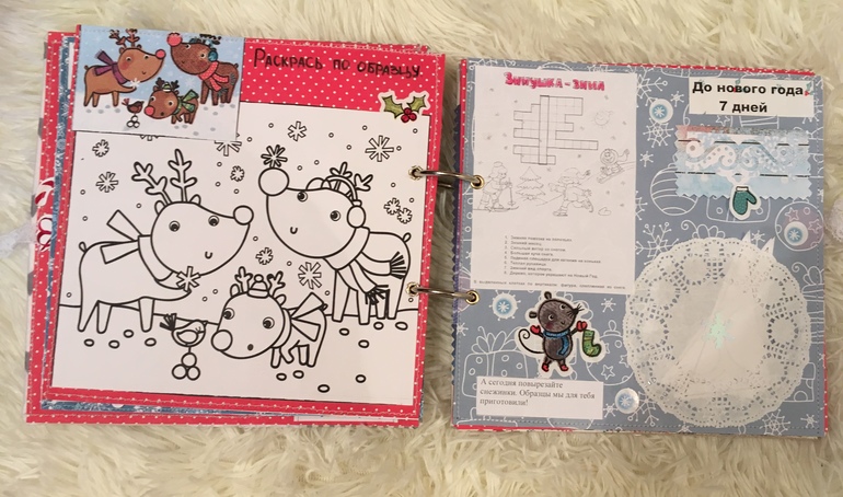 Мой адвент в виде Книги- альбома. Сразу решается вопрос куда девать все нарисованное, обведённое и раскрашенное от адвент календаря. Выбросить все рука не поднимается! Все рисунки останутся в альбоме!