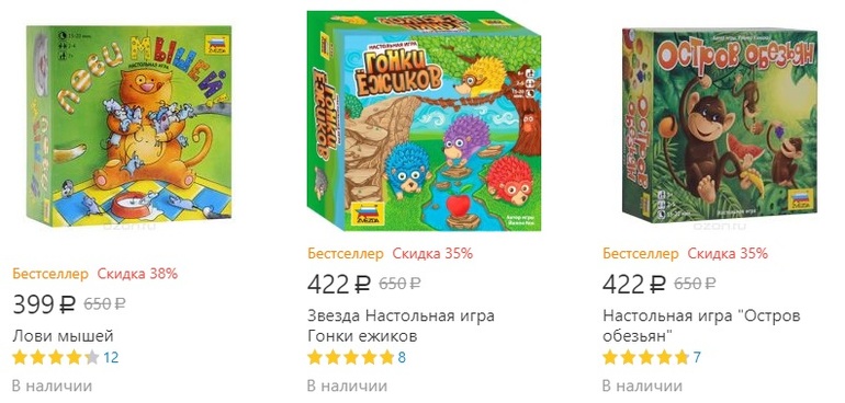 Так для примера игры от фирмы "Звезда" раздел со скидками