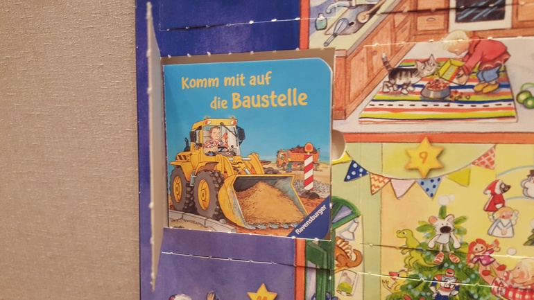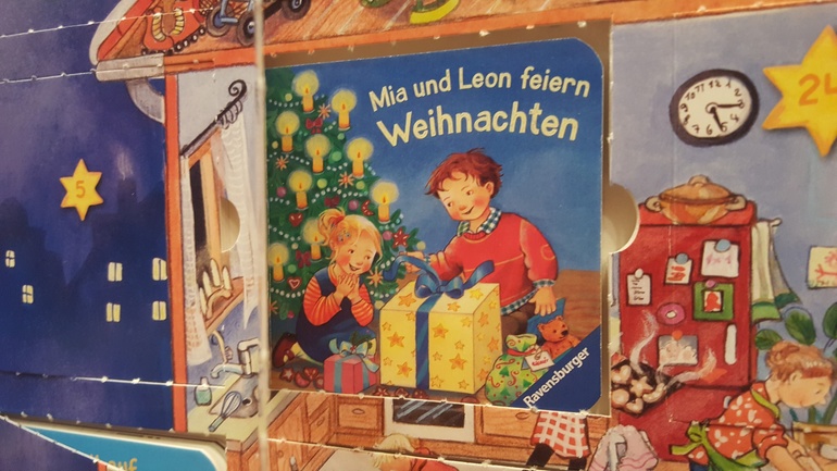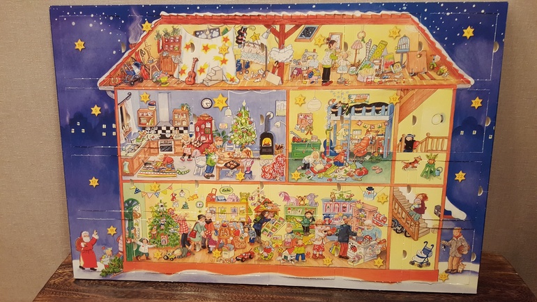 Так как основная игра, на которую возлагалось много надежд, оказалась неудачной, я решила занять дочь вот таким адвент-календарём, в каждом окошке которого пряталась маленькая книжка на какую-нибудь рождественскую или познавательную тему. По большому счёту, содержание этих книжек мы уже немного переросли, поэтому календарь я решила оставить на следующий год для нашей второй малышки.
