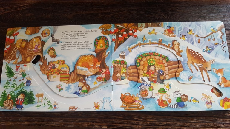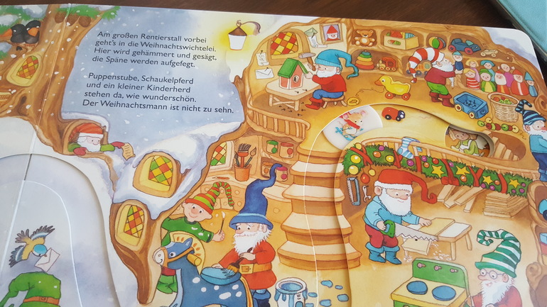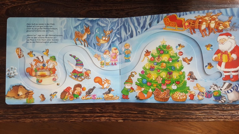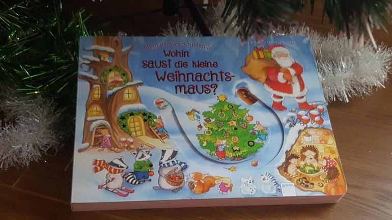 В этот день у нас планировался театр теней, подготовить который, к большому огорчению, у меня так и не получилось. Поэтому вечернюю сказку заменили просмотром вот такой рождественской книжки.