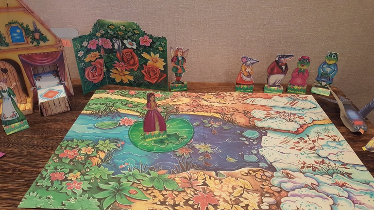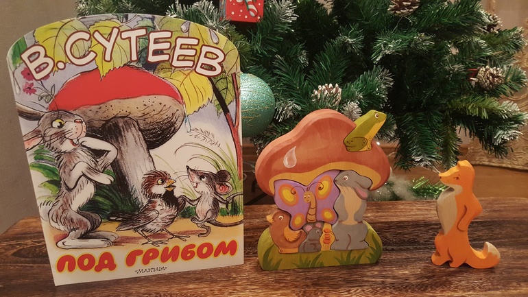 Вечером получили в подарок деревянный пазл "Под грибом" и обыграли сказку.