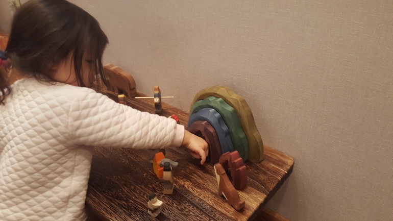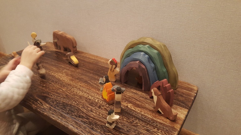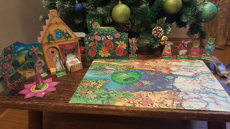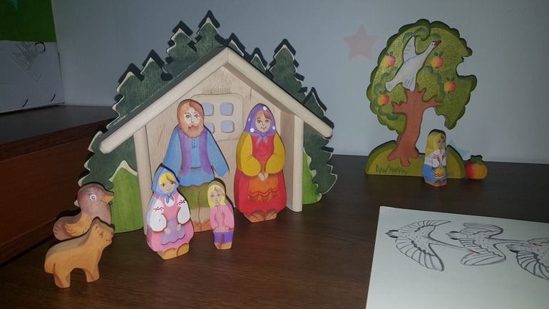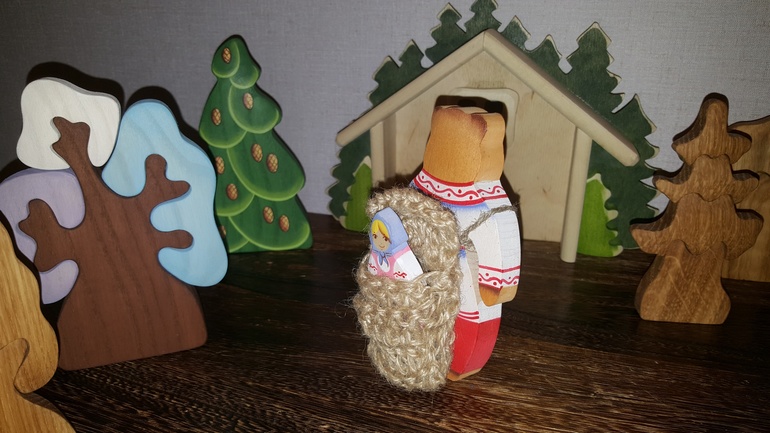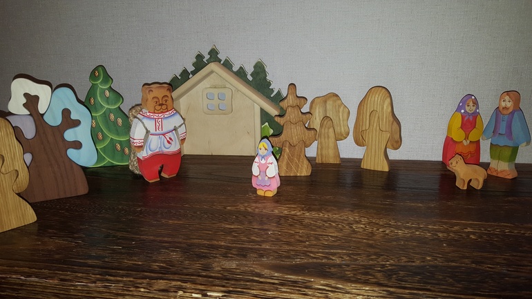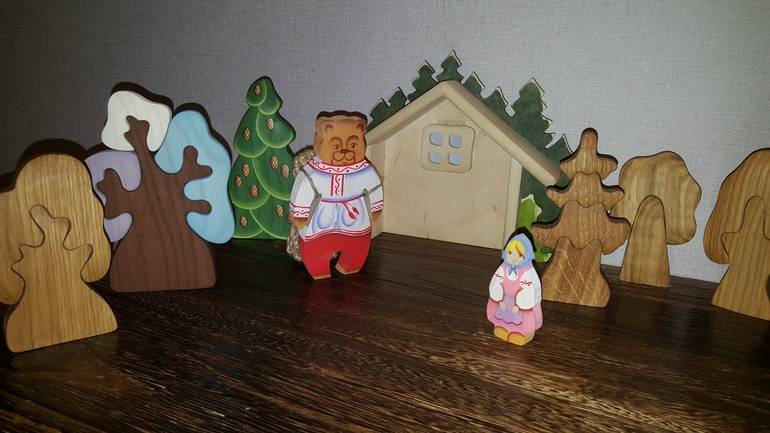 А вечером Кристина нашла под ёлочкой набор деревянных фигурок к сказке "Маша и медведь".