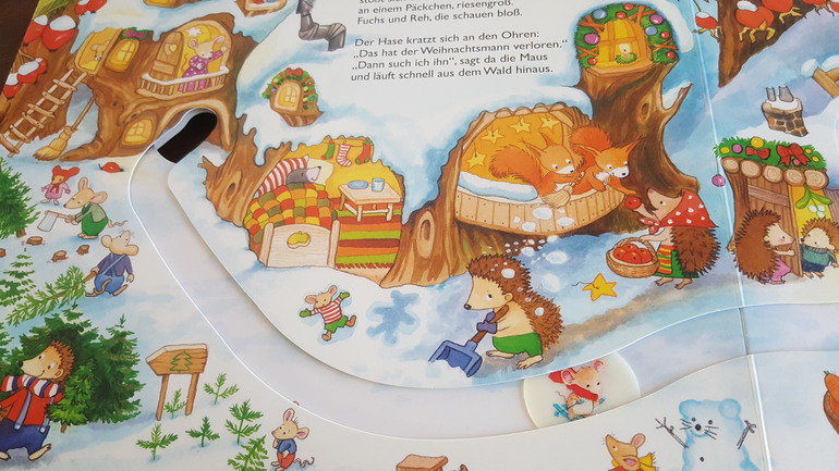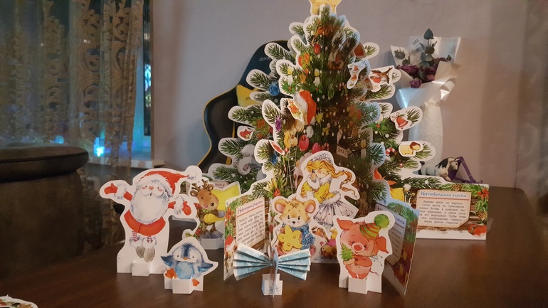 Рядом с ёлкой в мы обнаружили в книжке вот такие яркие и милые фигурки новогодних персонажей, с которыми также можно обыграть любой новогодний сюжет.