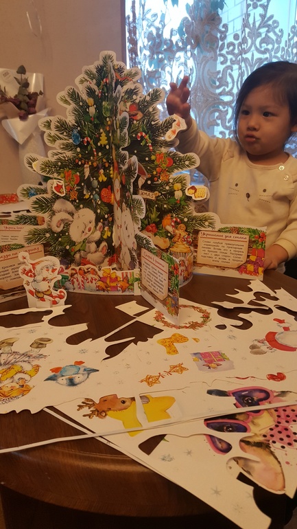 И вот только к четвёртому дню адвента Кристина разыгралась и уже с удовольствием стала выполнять задания, которые с радостью находила возле ёлочки.