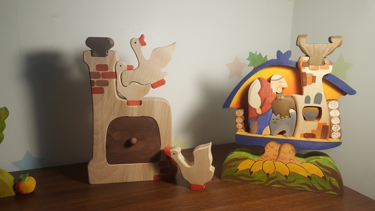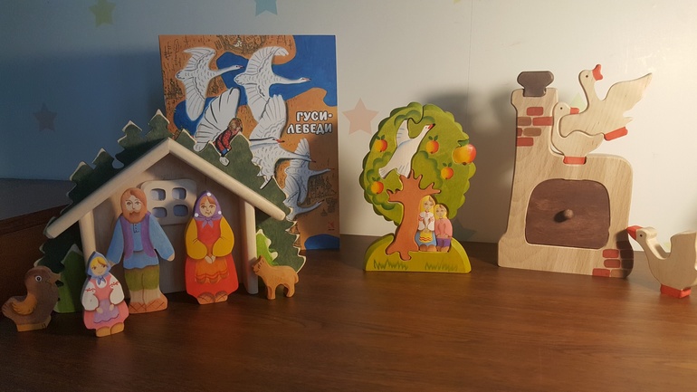 В тот день планировали обыграть сказку "Гуси-лебеди", но у меня абсолютно не хватило времени, так что сказку обыграли немного позже. Для этой сказки дочери было подарено целых три пазла из дерева.