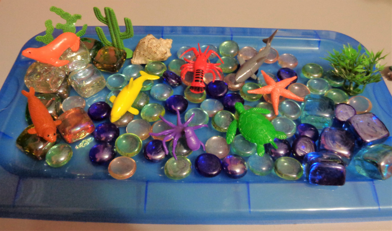 Развивающие игрушки (пазлы, вкладыши, конструкторы, мозаики)Мы сегодня делали сенсорную коробку "Море".