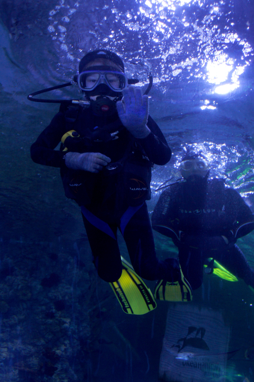 Дайвингом ребёнок занимается с октября раз в неделю в подводном клубе "Русский дайвинг". Не профи, конечно, но опыт у него уже есть и этого хватило чтобы его пустили в Океанариум без предварительного погружения в бассейне, а сразу в аквариум, что нам вышло на 2000 дешевле, то есть в 7500. Работники из Крокус Сити позвонили нашему тренеру и согласовали вопрос "А можно ли этого мальчика пустить без бассейна?". Тренер заверила что можно)) А вот тут тренер пишет про наш детский клуб)