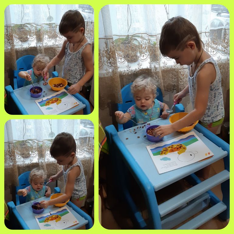 Конечно, Илюше нравится иногда возиться с Аришей и пказывать, какой он умничка - старший братик. Правда, после таких занятий совместных надо отмывать пол квартиры)))