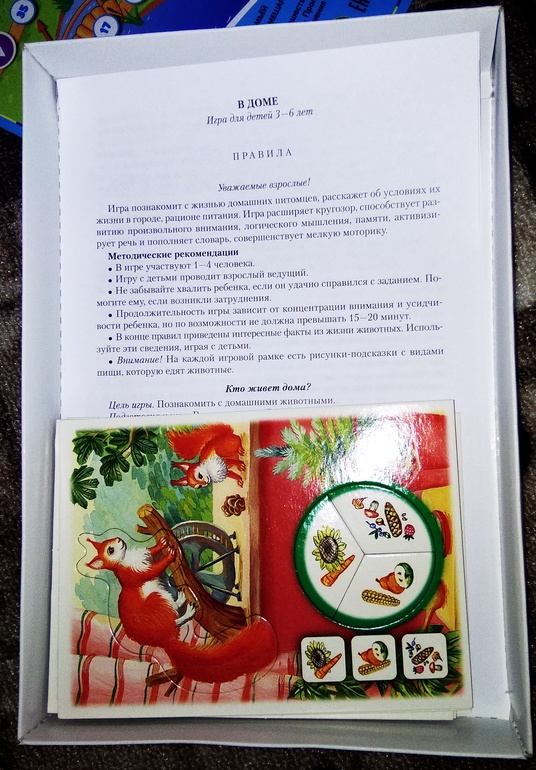 Очень заинтересовала в магазине игра "В доме" от изд. ООО "Дрофа-медиа". Коробка формата А 4. Несколько вариантов игр: подобрать кто что ест и чьи мамы. В инструкции вариантов больше. В комплекте карточки: кошка, хомячок, попугаи, морская свинка, черепаха, собака, белка, кролик (декоративный). В инструкции кратко о перечеслинных животных (о содержании в домашних условиях, дружелюбности, питании и отличительных особенностях).