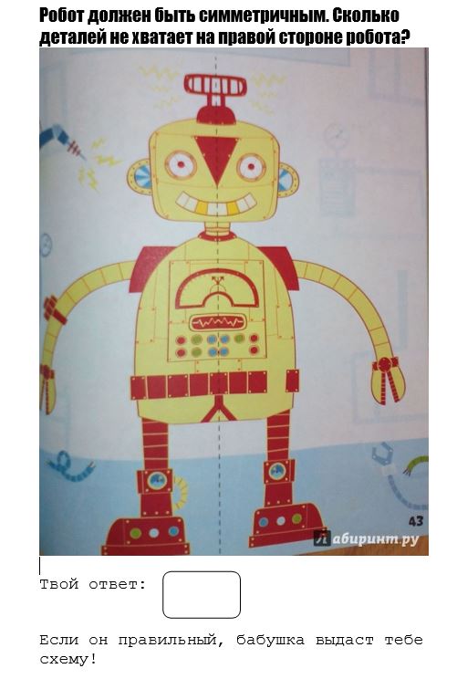 Недавно я с удовольствием ему объясняла осевую и центральную симметрию, быстро всё понял. Поэтому и с роботом справился и получил от меня схему квартиры: