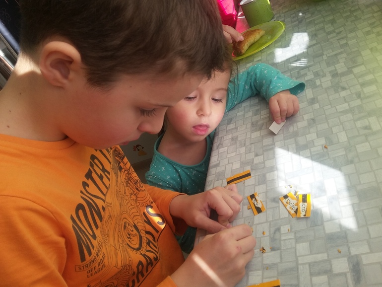 Больше всего ему в этот раз задание с шариками понравилось. Особенно искать их в ванне, в тумбе с обувью, в журнальном столе :))