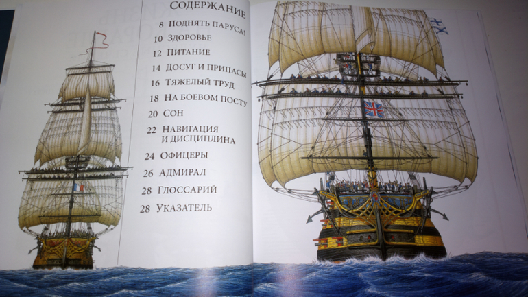 Вся книга представляет собой увлекательную экскурсию по кораблю. Вы узнаете много интересного, заглянете во все уголки корабля, рассмотрите в мельчайших деталях, как жили офицеры и матросы на борту парусного судна.