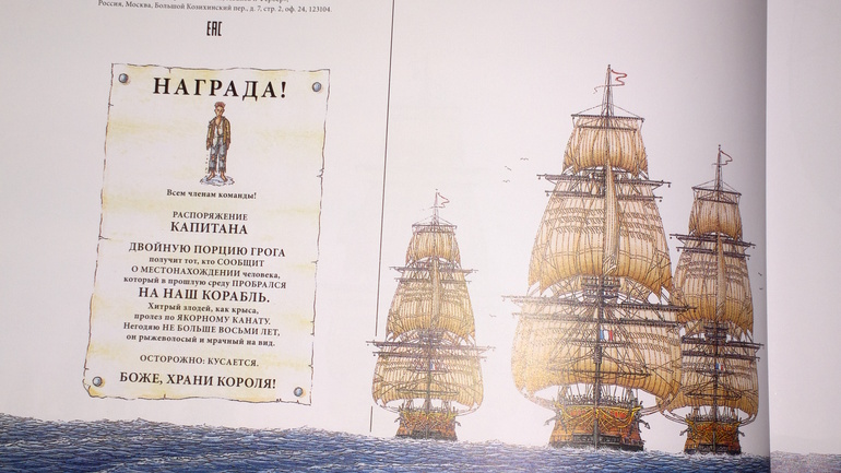 Самый внимательный читатель сможет заметить небольшое объявление о том, что на корабль пробрался человек 8 лет. Осторожно: он кусается.