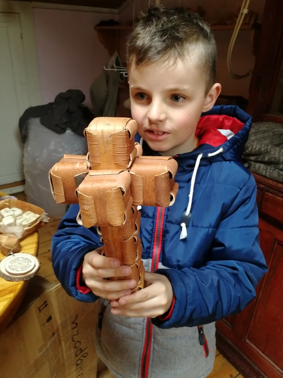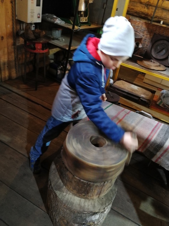 2 минуты (ДВЕ) мы провели в берестяной мастерской. Успели посмотреть бересту:
