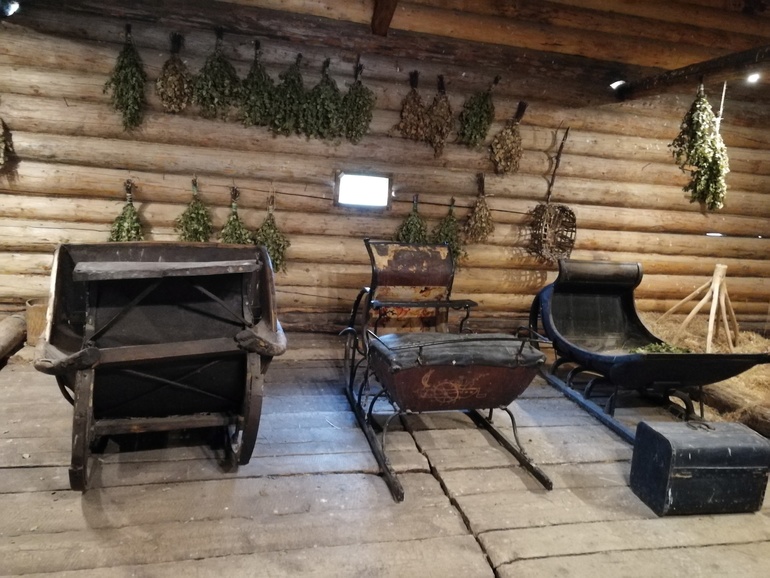 Мы подходим к старой части деревни, куда перенесли настоящие дома из Архангельских и Вологодских деревень: